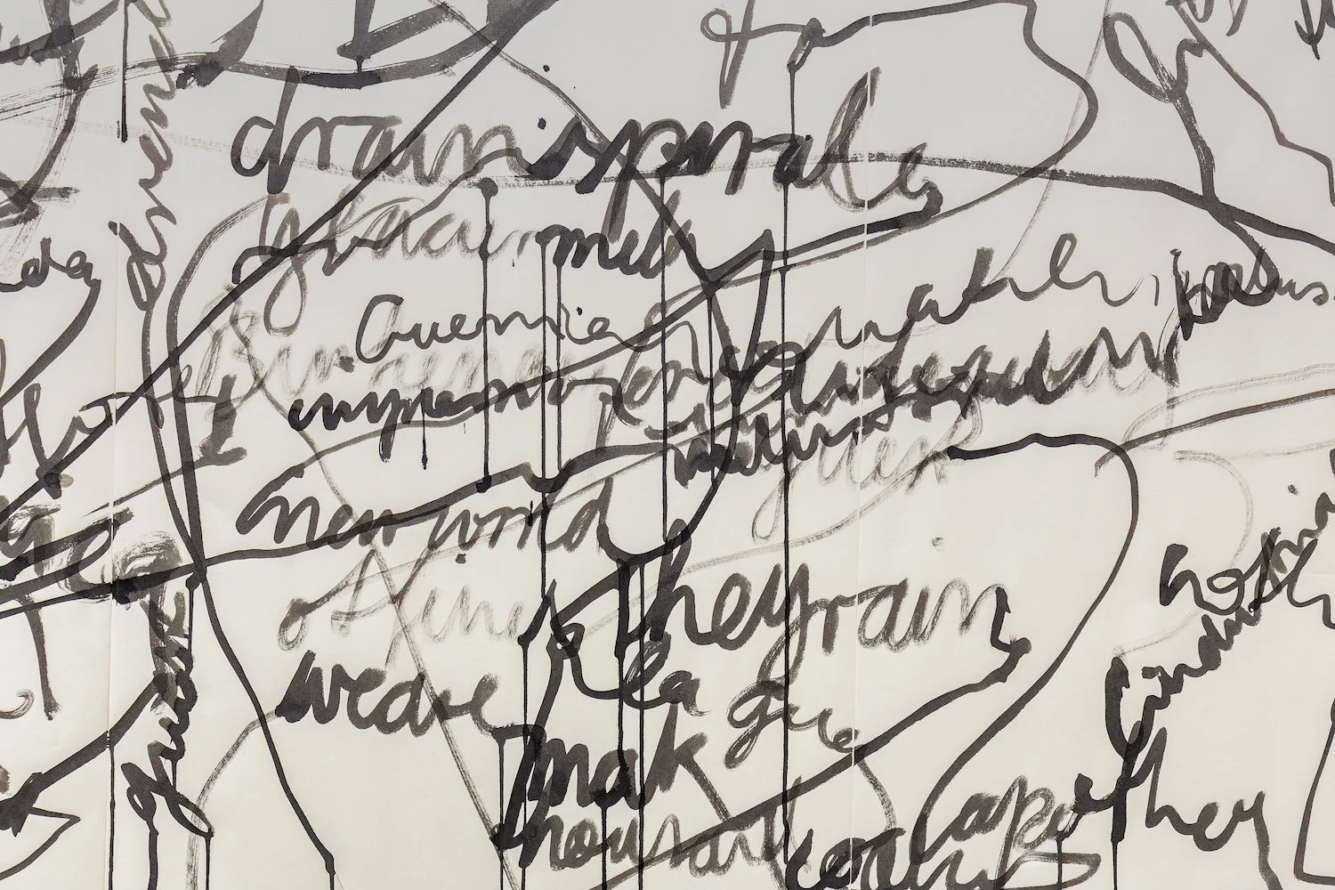 Stella Sieber, Environmental Alphabet, performance with sound, paper and ink on gallery wall, 14.00 min, 2025 [detail]