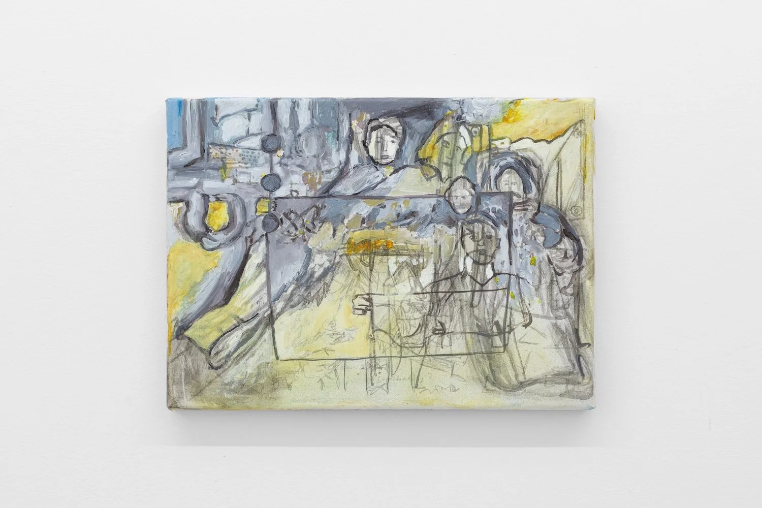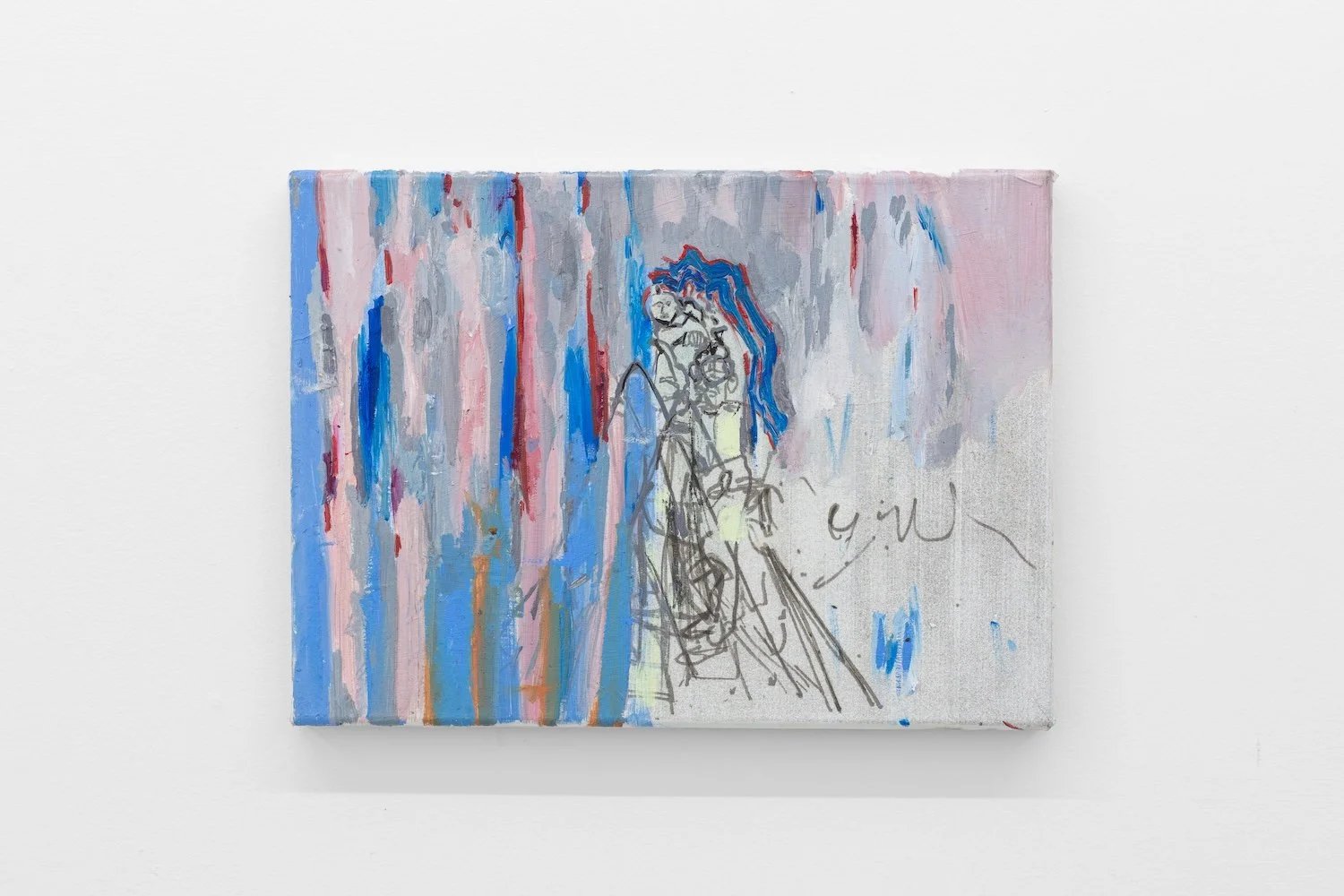 Stella Sieber, Untitled (from the series Tourette), acrylic, oil, graphite, inkjet print laid on canvas, 21.0 x 29.0 cm, 2025