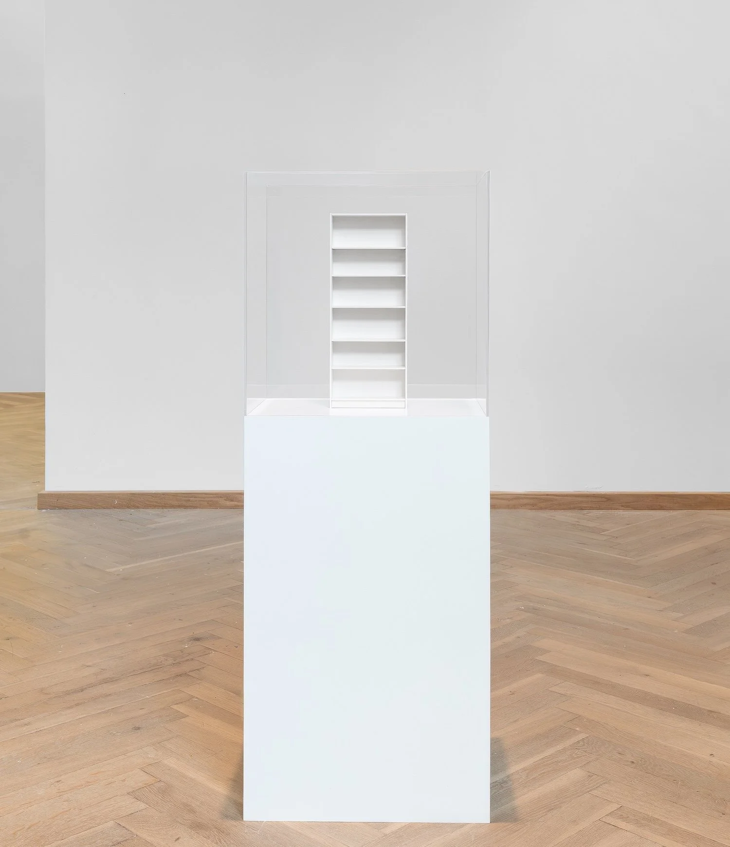 Sanna Helena Berger, Facade, Mini-Billy, plexiglass case, plinth, 106.0 x 40.0 x 28.0 cm, 2025