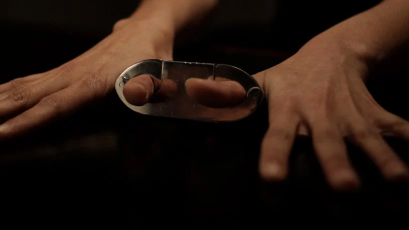 Maryam Jafri, Depression, wood, silicone feet, acupuncture needles, glass cupping equipment, photograph mounted on aluminium, egg carton, ambiental dimension, 2017