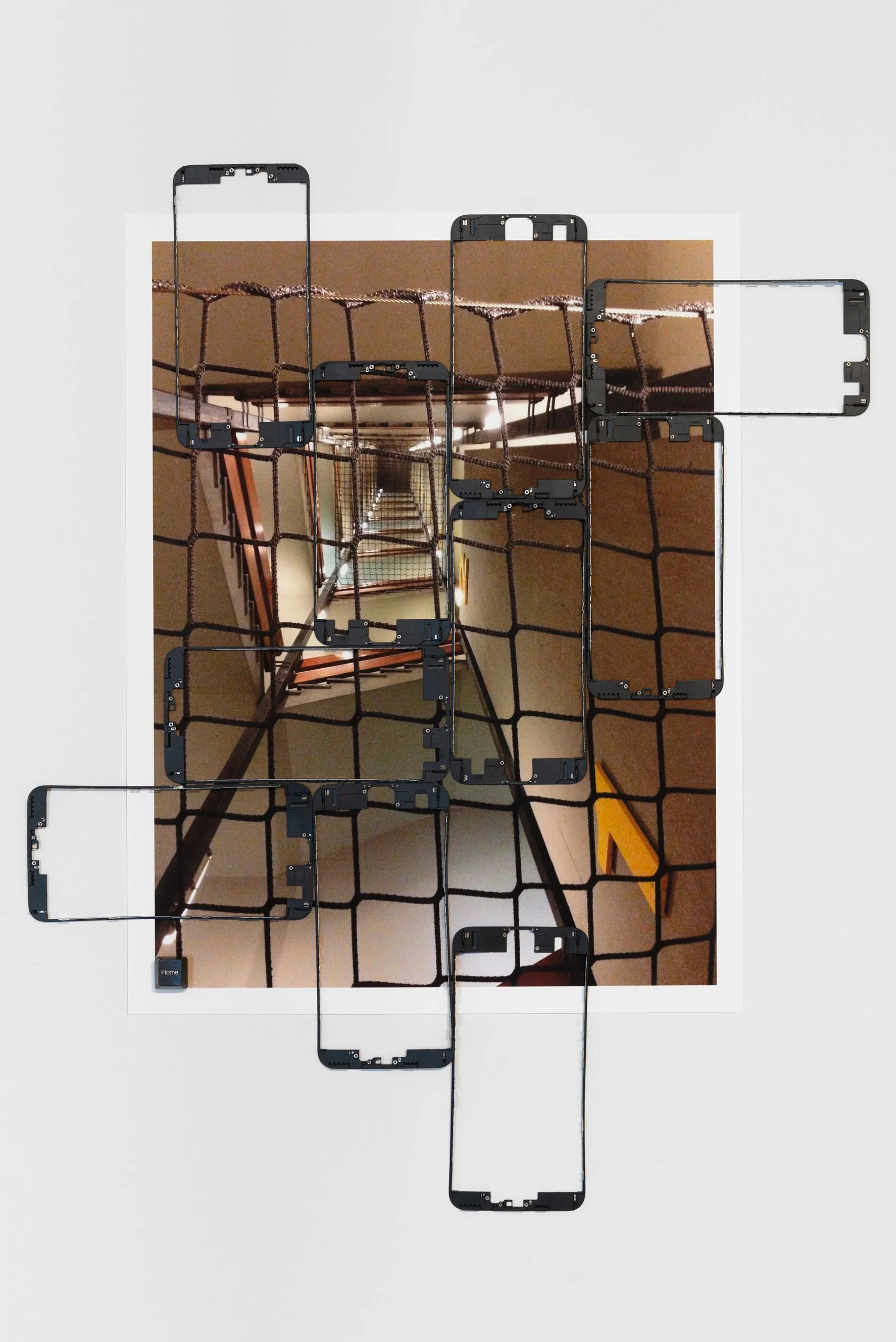 Maryam Jafri, Home (No Lithium, No Work), archival inkjet prints, smartphone bezels, key cap, 33.66 x 43.81 cm, 2023